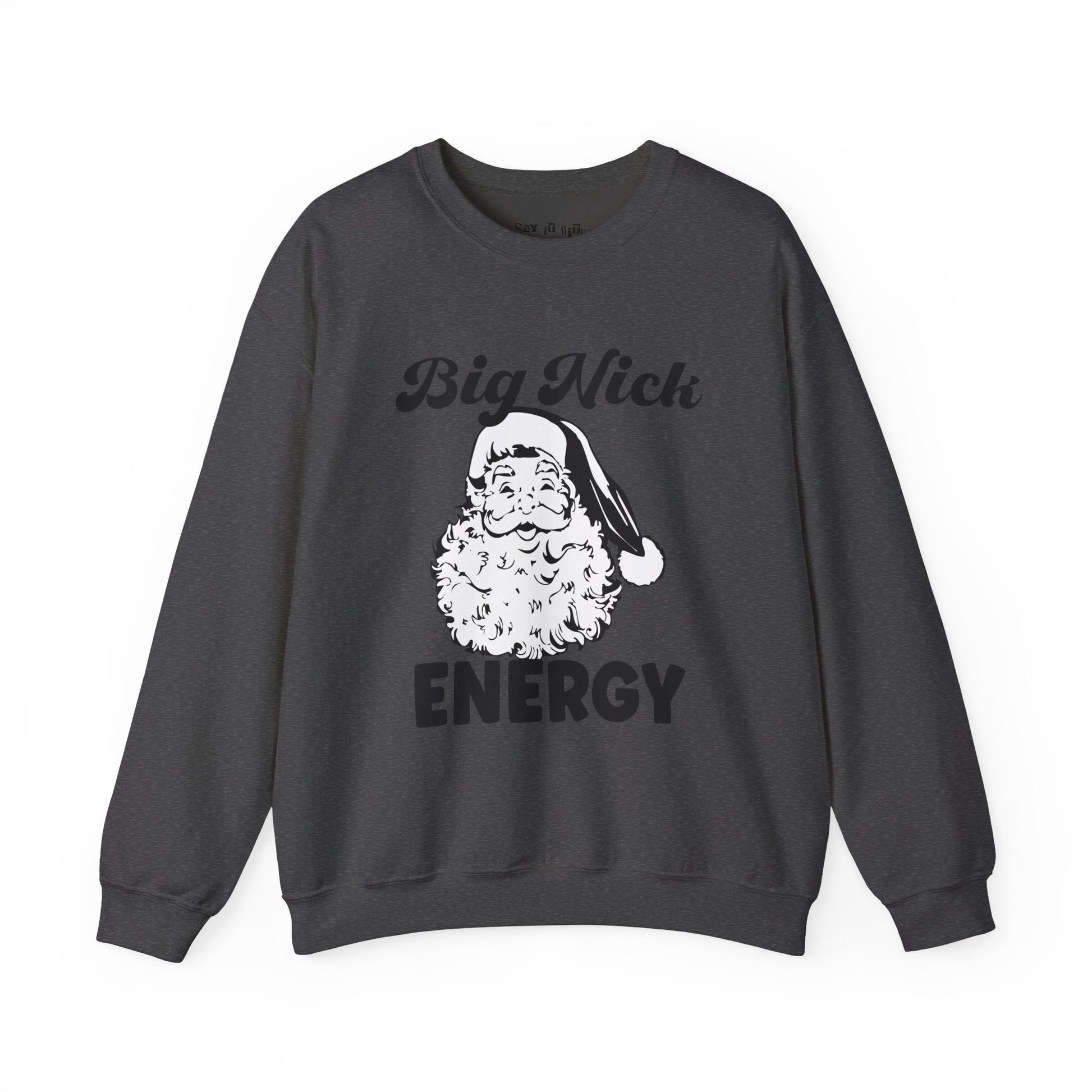 Christmas sweatshirt, funny holiday pullover, Big Nick Energy sweatshirt, unisex festive sweater, cozy winter apparel, Santa-inspired sweatshirt, holiday humor clothing, Christmas party outfit, warm holiday wear, humorous Christmas gift, trendy holiday sweatshirt, witty festive design