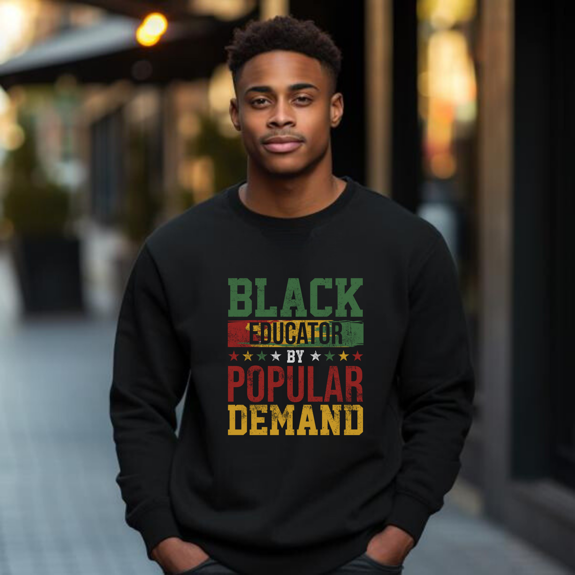 "Embrace the pride and power of black educators with our 'Black Educator Popular Demand' sweatshirt! Crafted with premium quality fabric and featuring a bold message, this sweatshirt is a must-have for those who advocate for inclusive education.