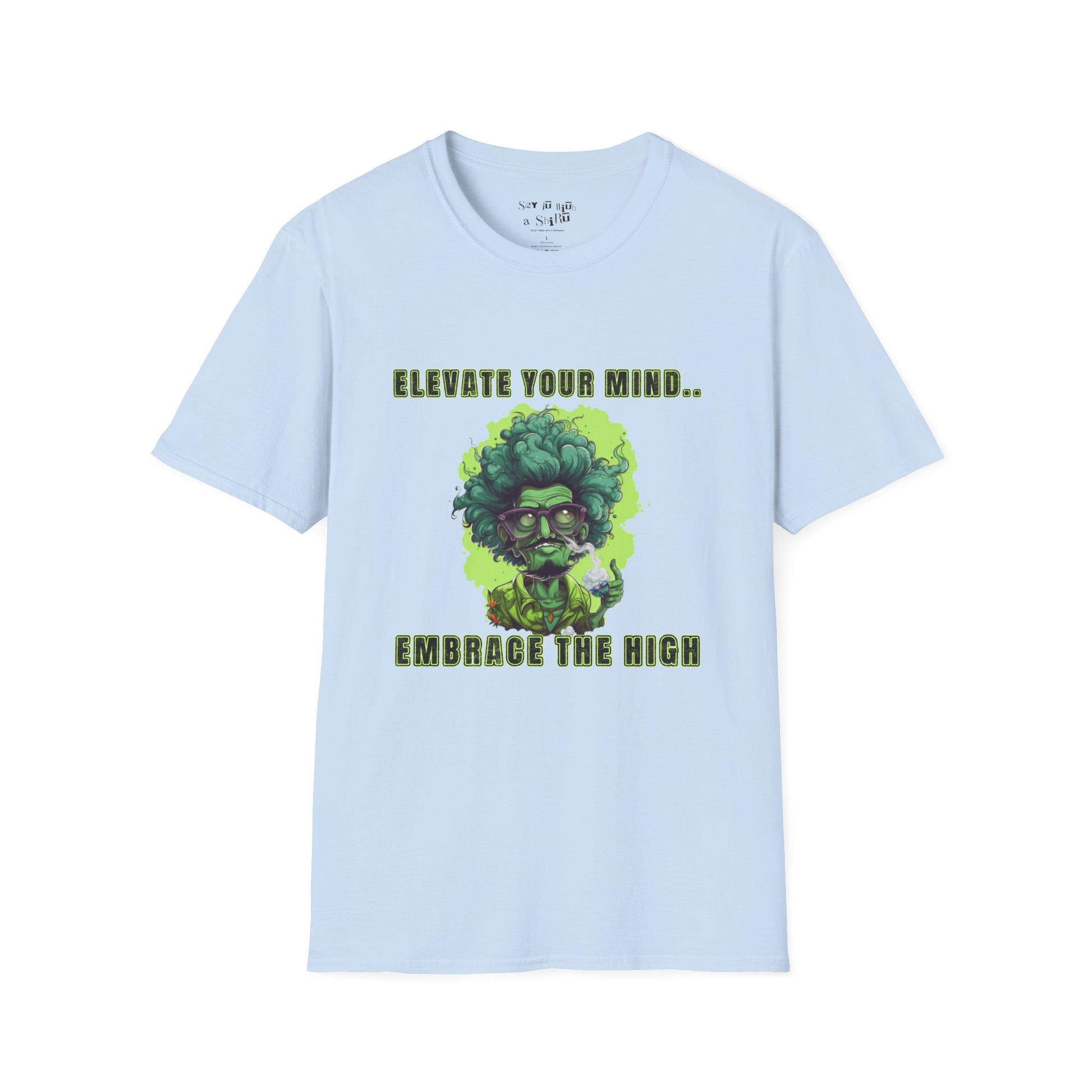 Stand out from the crowd with our thought-provoking "Elevate Your Mind, Embrace the High" graphic tee. This unique design is a conversation starter for anyone seeking personal growth and intellectual exploration. This shirt is a great way to express your individuality and open a dialogue about self-discovery and expansion. Browse our collection of graphic tees and find a design that speaks to you!