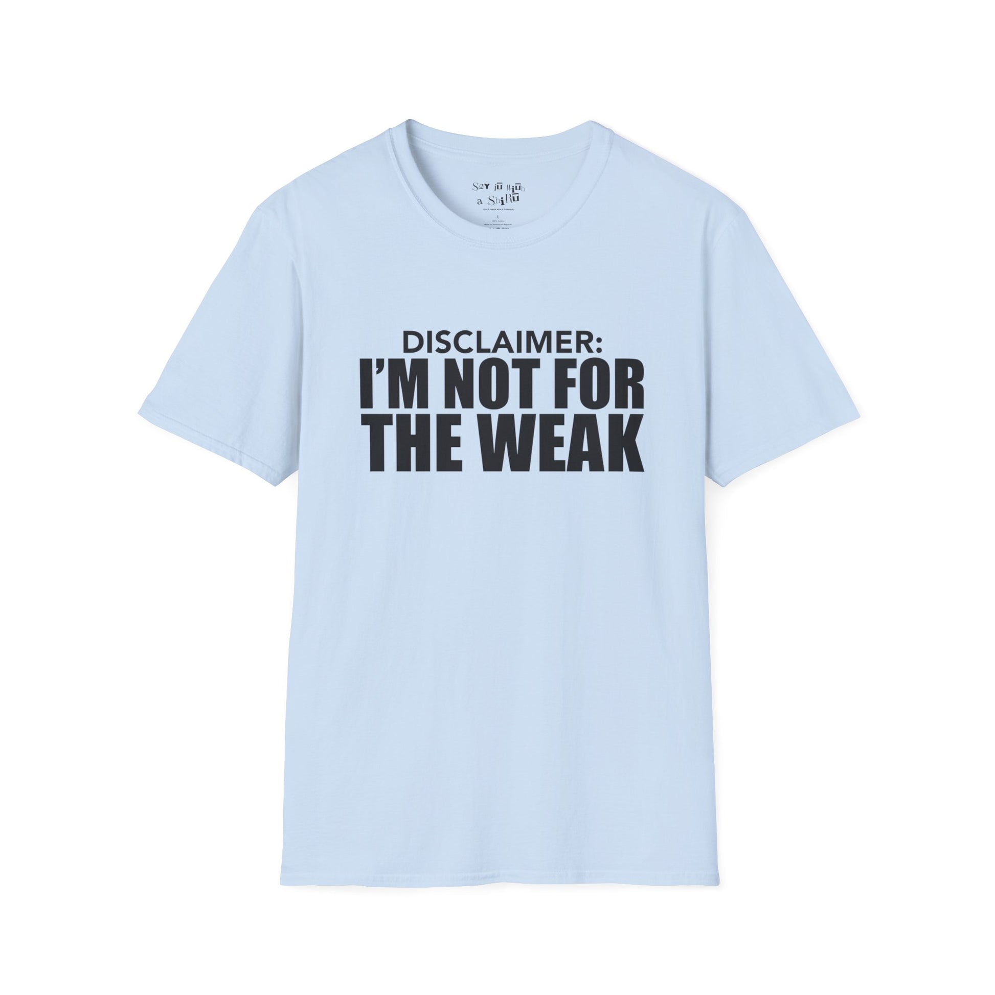 Don't just wear a shirt, wear an attitude. This bold "I Am Not for the Weak" graphic tee is the perfect way to show the world you're up for anything. Made from high-quality, comfortable ring spun cotton, this t-shirt is ideal for those who push their limits and embrace challenges. Whether you're hitting the gym, conquering your to-do list, or simply living life on your own terms, this statement tee will keep you motivated and feeling strong.