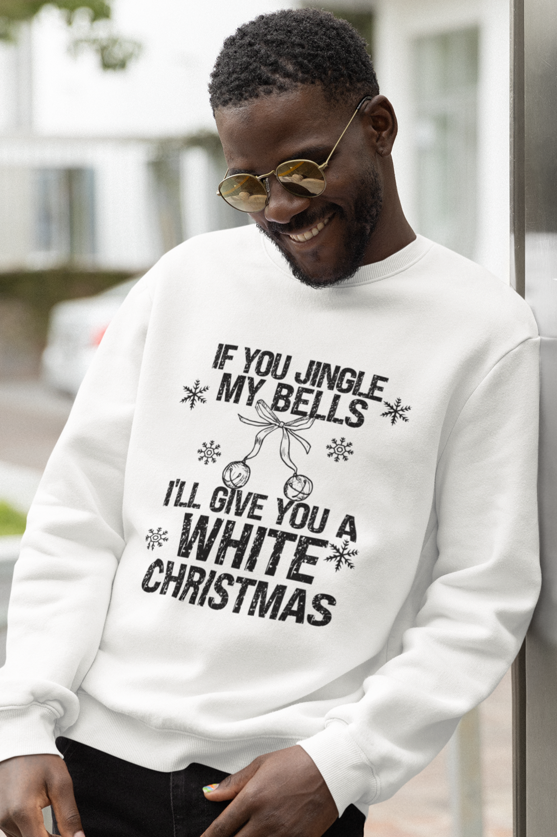 "If You Jingle My Bells, I'll Give You a White Xmas" Sweatshirt – Funny, Festive, and Bold Holiday Apparel