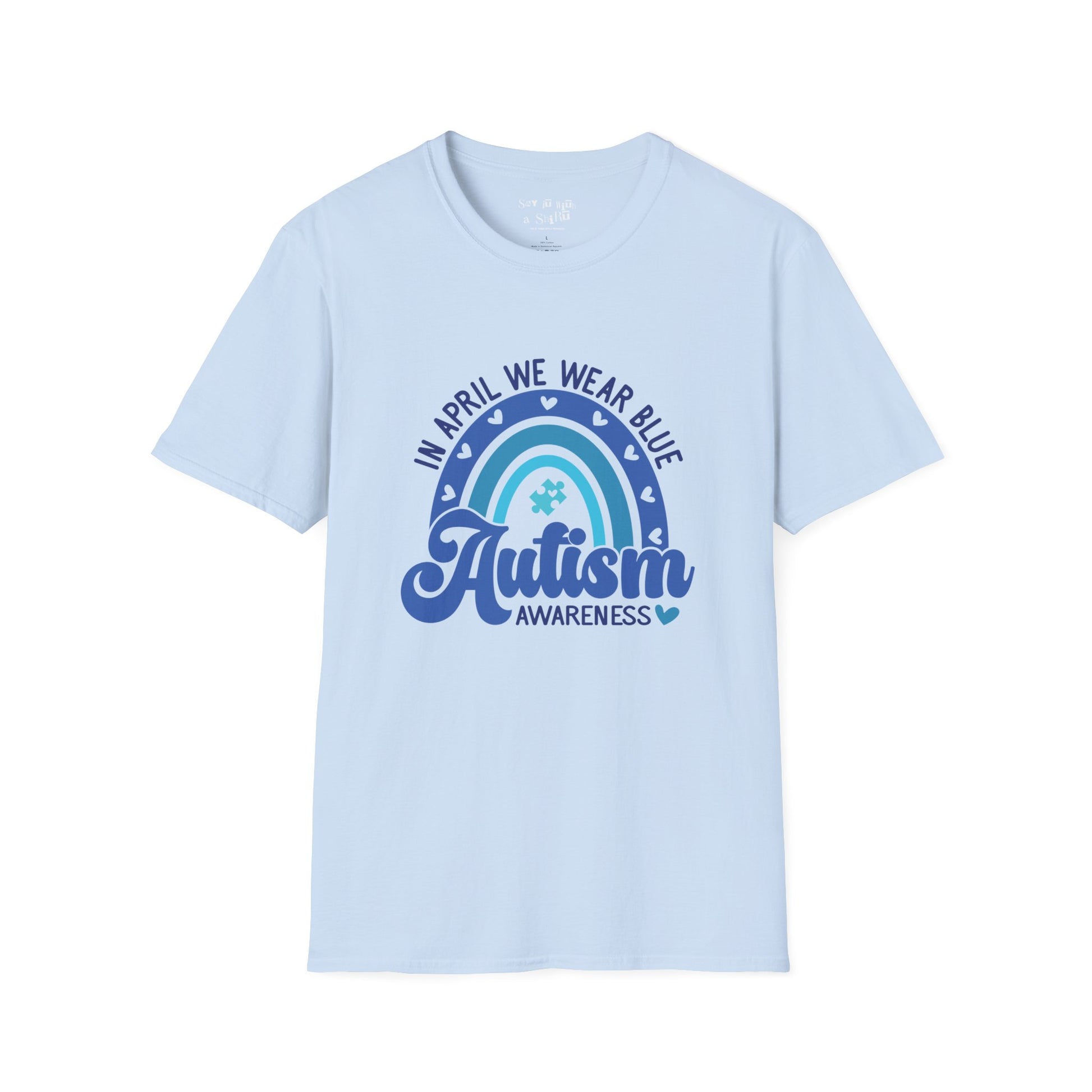 "Elevate your support for Autism Awareness Month with our exclusive 'In April We Wear Blue For Autism Awareness Month' t-shirt! Crafted from premium materials, this tee ensures both comfort and durability, making it perfect for everyday wear. With its powerful message, it serves as a reminder to show solidarity and understanding for individuals on the autism spectrum and their families. Available in a variety of sizes and shades of blue, it's a versatile addition to any wardrobe. Whether you're participating in a fundraiser or simply spreading awareness, this shirt allows you to make a statement with style. Order now and join us in promoting acceptance and inclusion!"