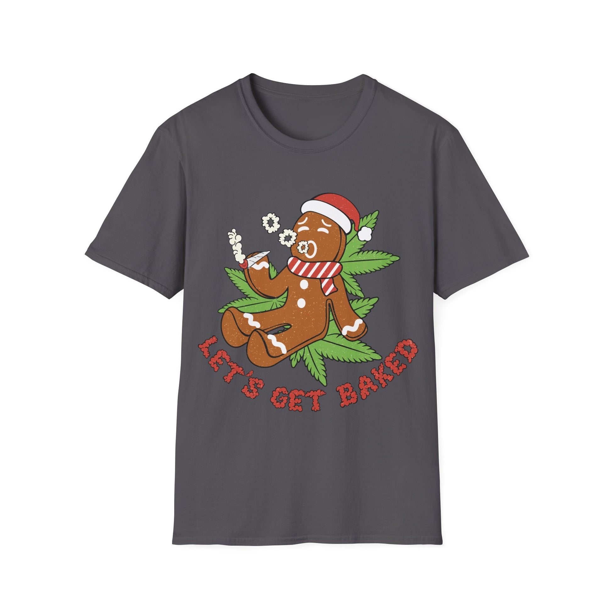 - Playful Holiday Design: “Let’s Get Baked” slogan with a gingerbread man graphic, perfect for adding a humorous twist to the holiday season.