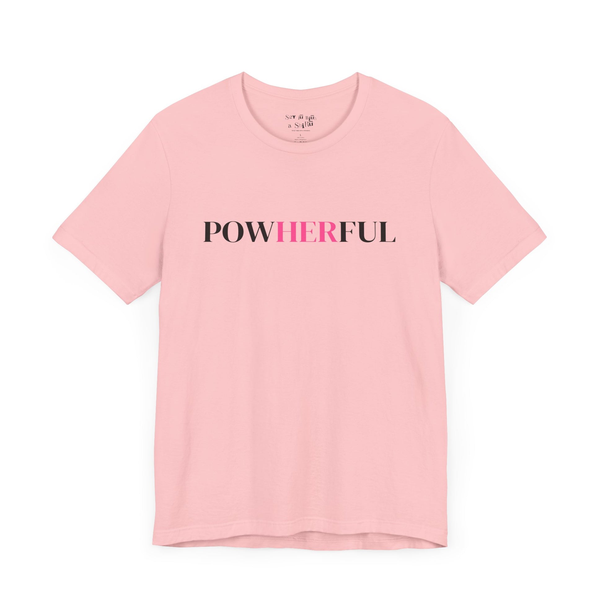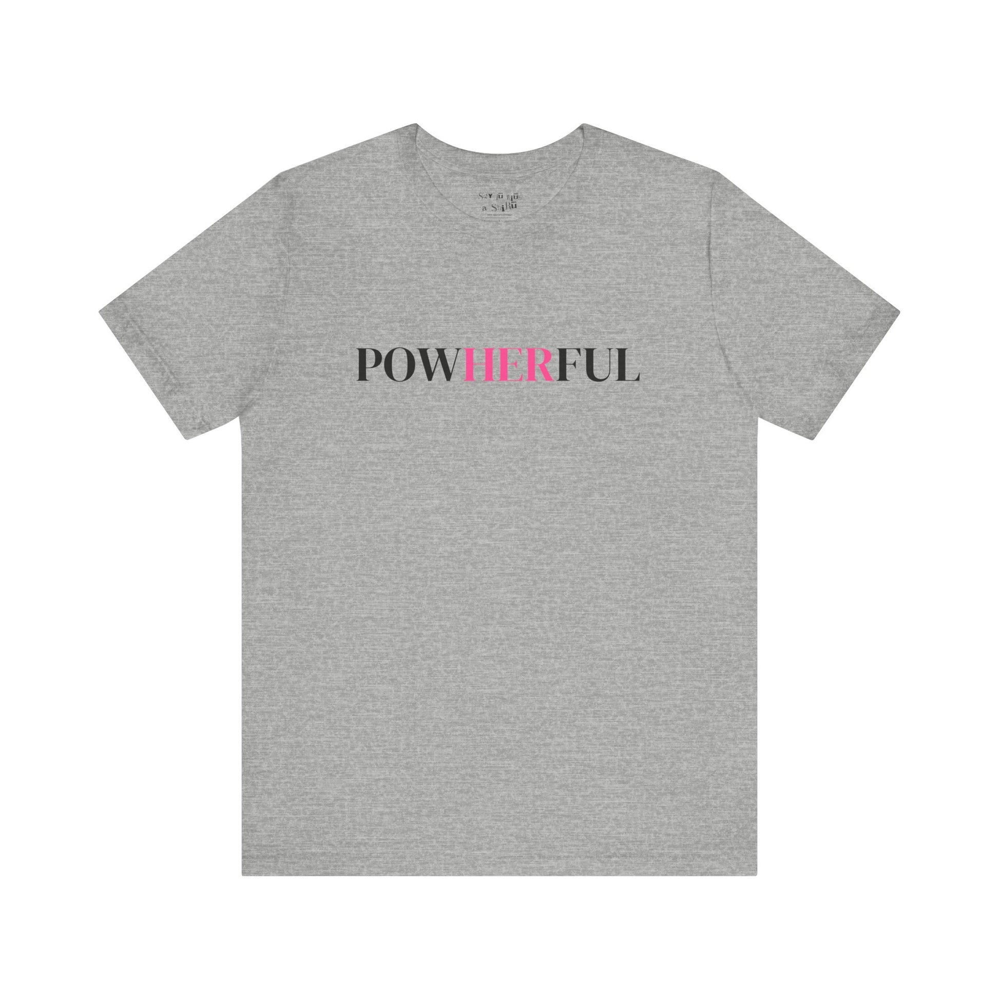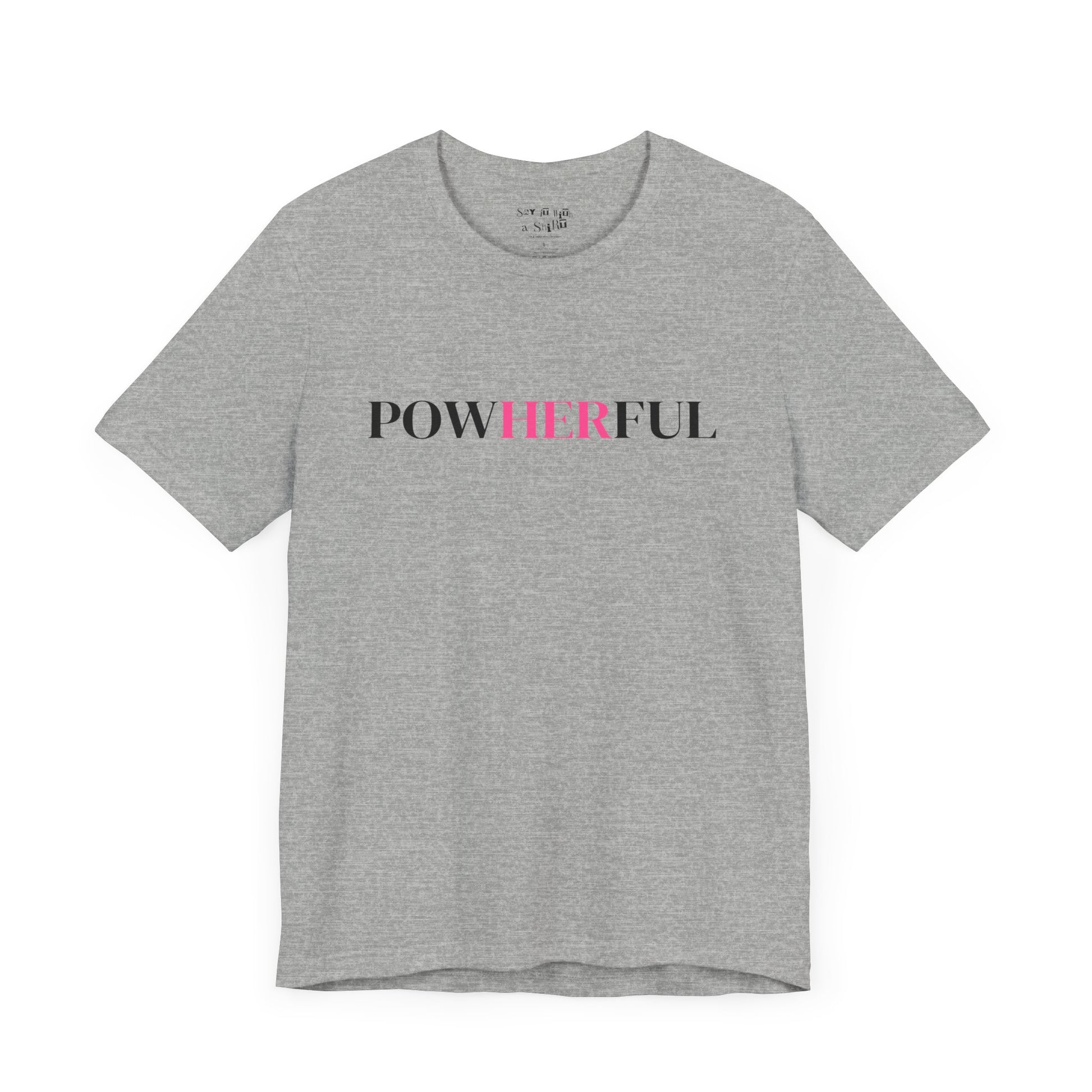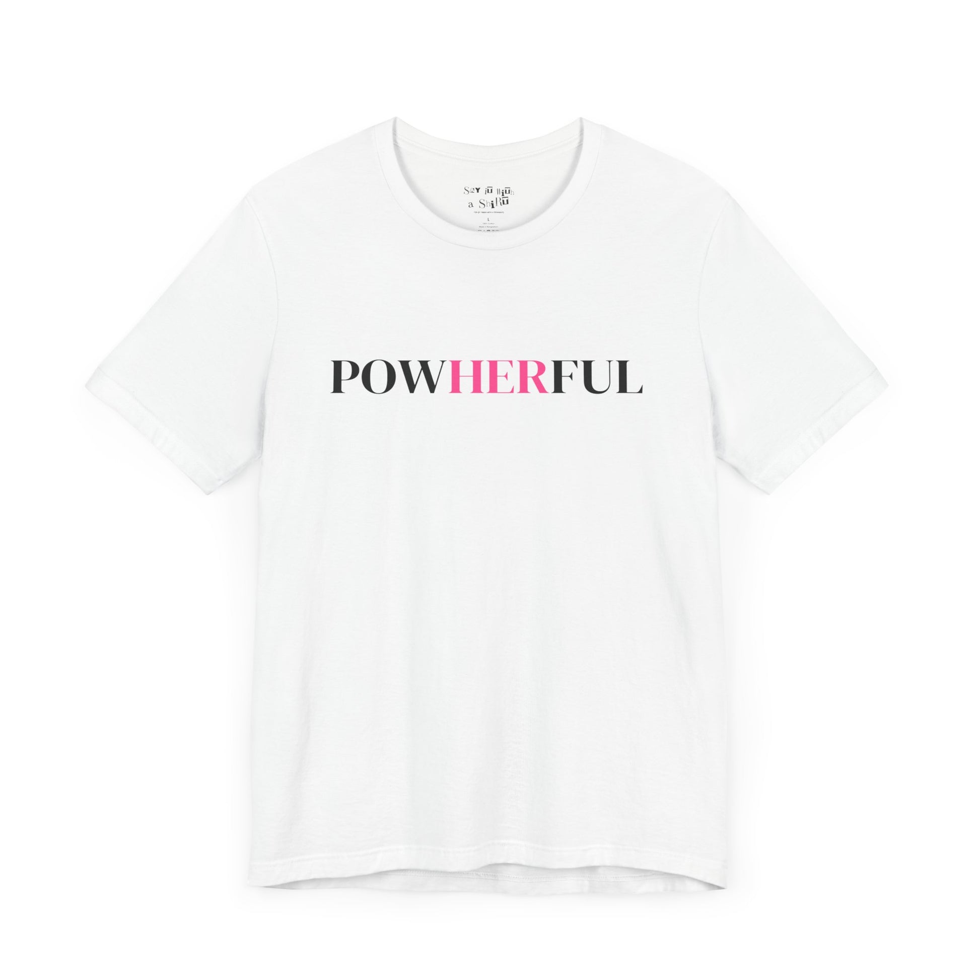 "Elevate your wardrobe with our empowering 'PowHERful' t-shirt, a celebration of strength, resilience, and feminine power. Crafted from high-quality fabric for a soft feel and lasting comfort, this tee is perfect for everyday wear or making a bold statement. Whether you're at work, hitting the gym, or simply embracing your unique identity, this shirt is sure to turn heads and inspire. Available in various sizes and colors to suit your style. Join the movement and showcase your strength with our PowHERful tee. Order now and make a statement!"