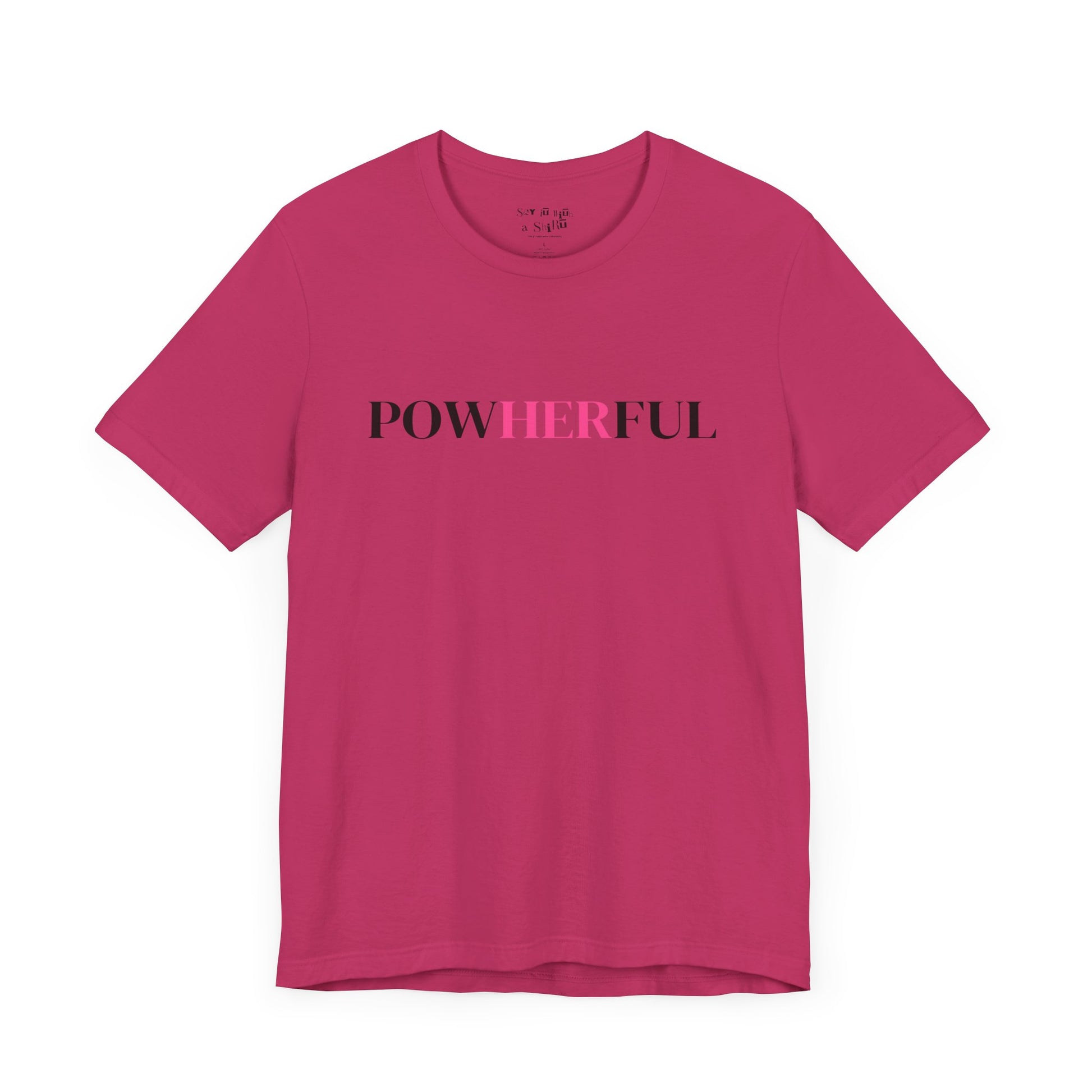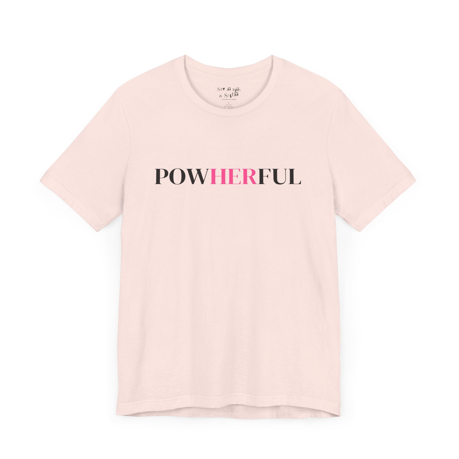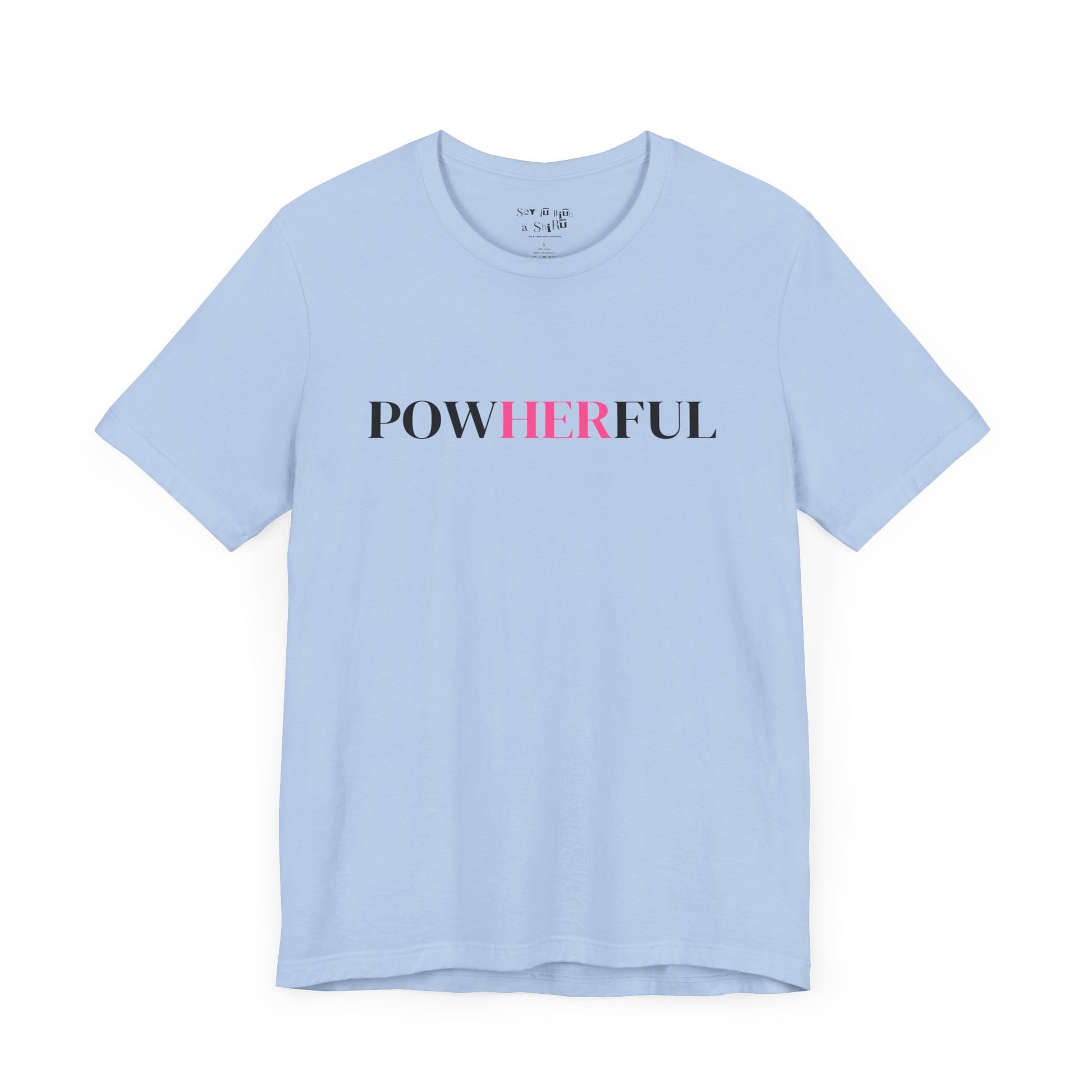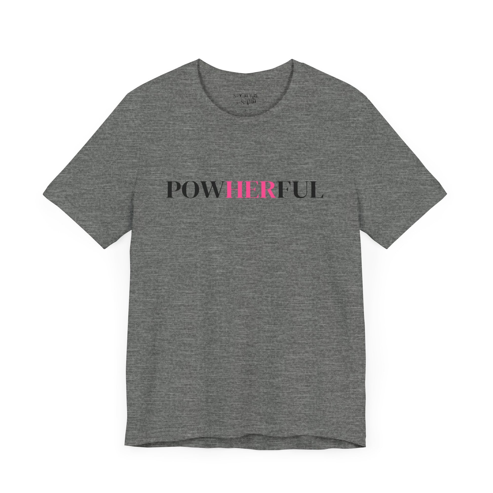 "Elevate your wardrobe with our empowering 'PowHERful' t-shirt, a celebration of strength, resilience, and feminine power. Crafted from high-quality fabric for a soft feel and lasting comfort, this tee is perfect for everyday wear or making a bold statement. Whether you're at work, hitting the gym, or simply embracing your unique identity, this shirt is sure to turn heads and inspire. Available in various sizes and colors to suit your style. Join the movement and showcase your strength with our PowHERful tee. Order now and make a statement!"