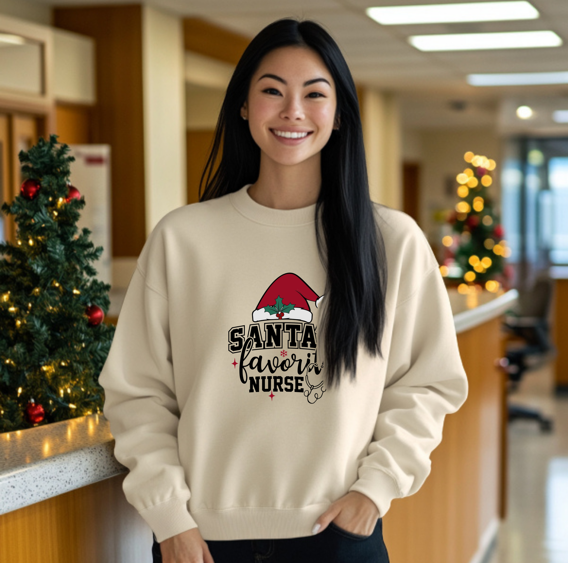 Celebrate the holiday season in style with our Santa's Favorite Nurse Shirt, designed for the hardworking healthcare heroes who bring joy and comfort to their patients every day. This festive shirt is a blend of humor and holiday cheer, perfect for spreading smiles both at work and off-duty. Whether you're clocking in for a holiday shift, attending a Christmas party, or relaxing at home, this shirt is sure to be a conversation starter.