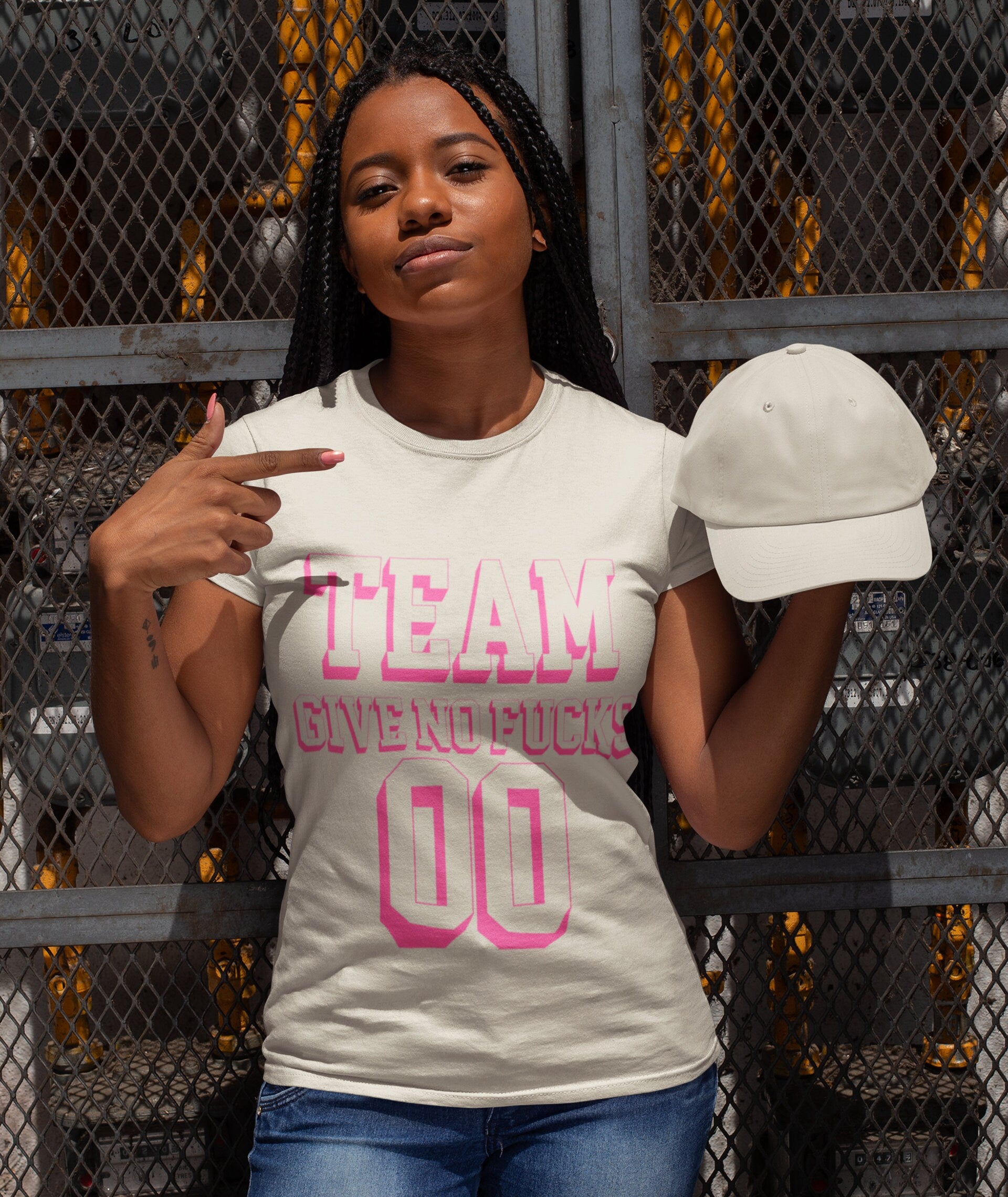 "Make a statement with our 'Team Gives No F**ks' tee shirt, the ultimate expression of fearlessness and attitude. Crafted from premium quality fabric, this tee combines comfort with unapologetic style. Whether you're defying norms, embracing individuality, or just living life on your own terms, this shirt is your perfect companion. Join the team that dares to be different and exudes confidence. Shop now and let your boldness shine!"