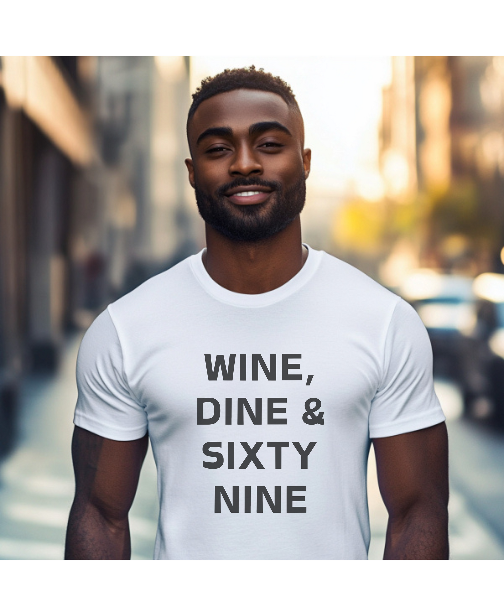 The Wine, Dine & Sixty Nine Tee makes a hilarious (or highly suggestive) gift for someone who doesnβt take life too seriously. π Perfect for anniversaries, parties, or when youβre just feelinβ frisky. π